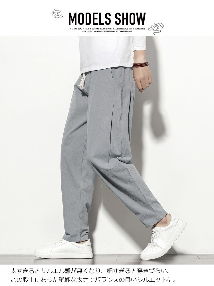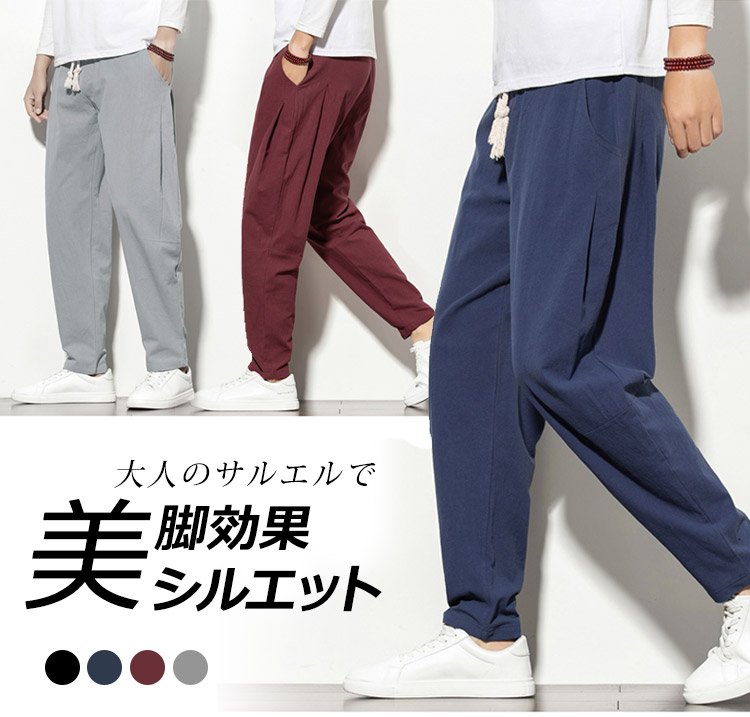 【サルエルパンツ】リネンサルエルパンツ 通気性良い 穿き心地抜群